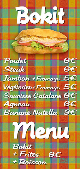 Vous êtes ici : Accueil\Réalisations\Création d'un dépliant présentant les menus pour Royal Bokit