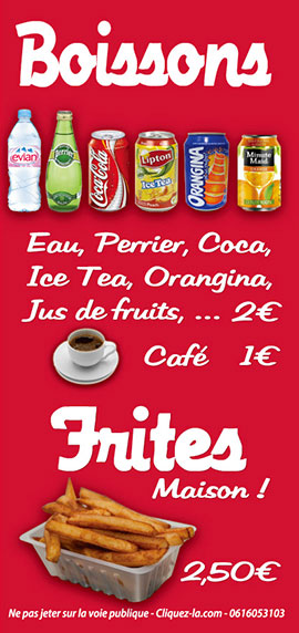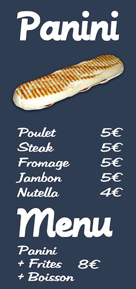 Dessus, vous trouverez la carte complète des plats qu'ils vous proposent, un plan d'accès, leurs horaires de travail et coordonnées.