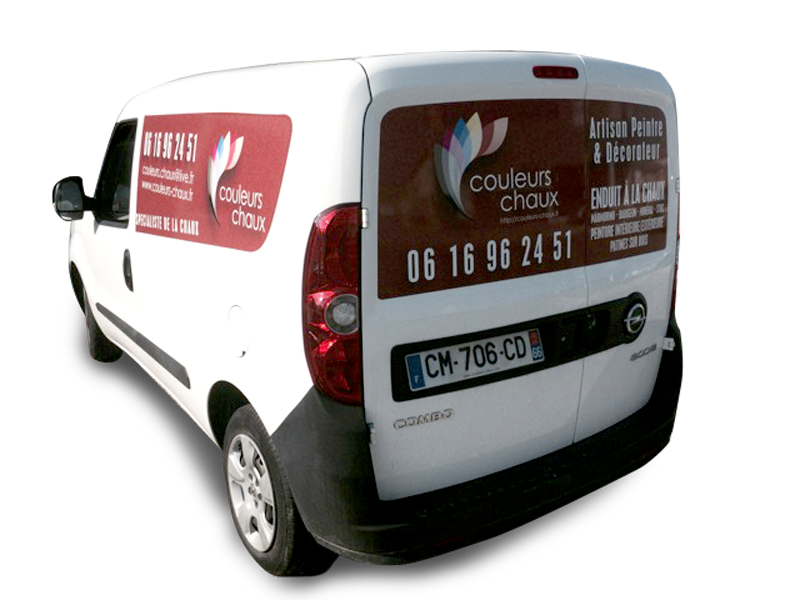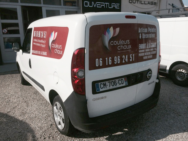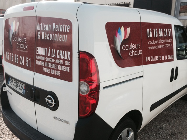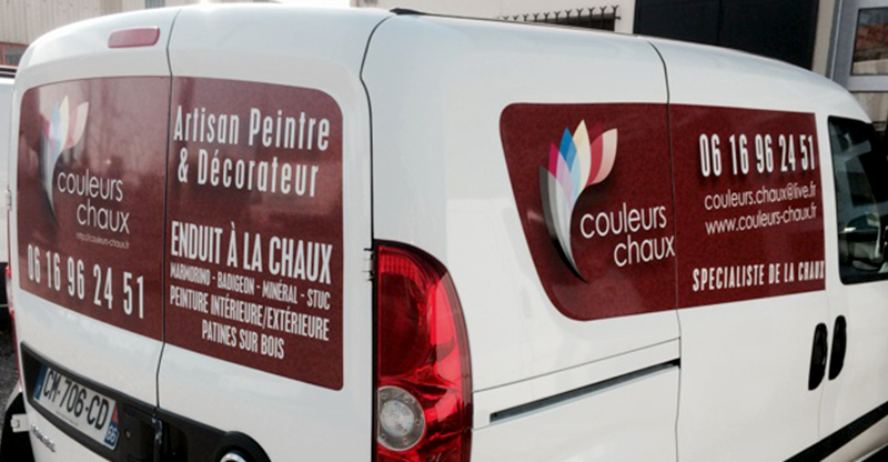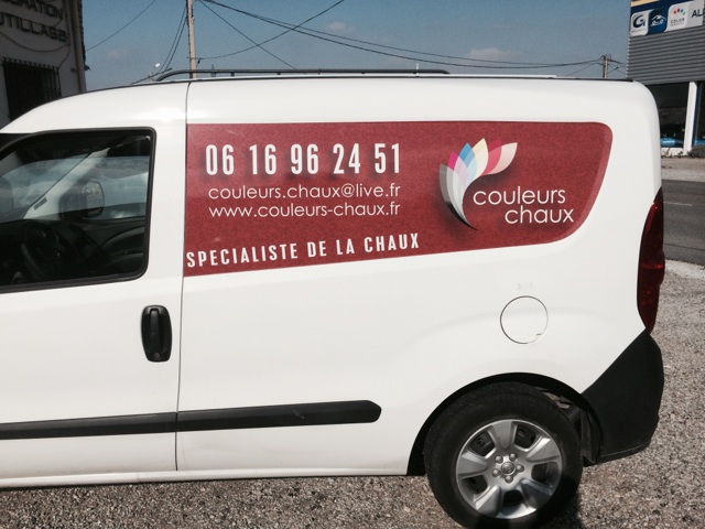 Nous avons réalisé le flocage du véhicule de la société Couleurs Chaux.