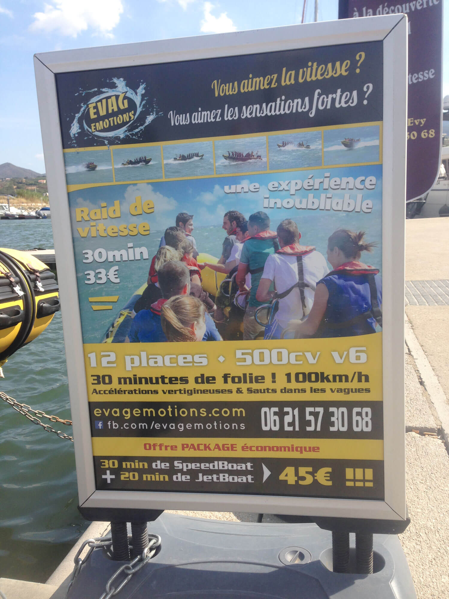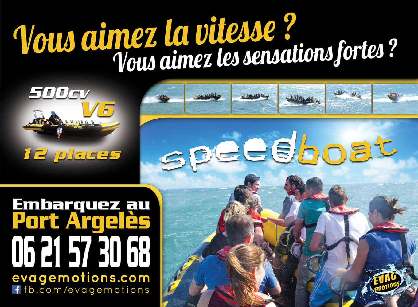 Embarquez sur un speedboat, bateau moteur rapide d'une puissance de 500 chevaux ou sur leur JetBoat.