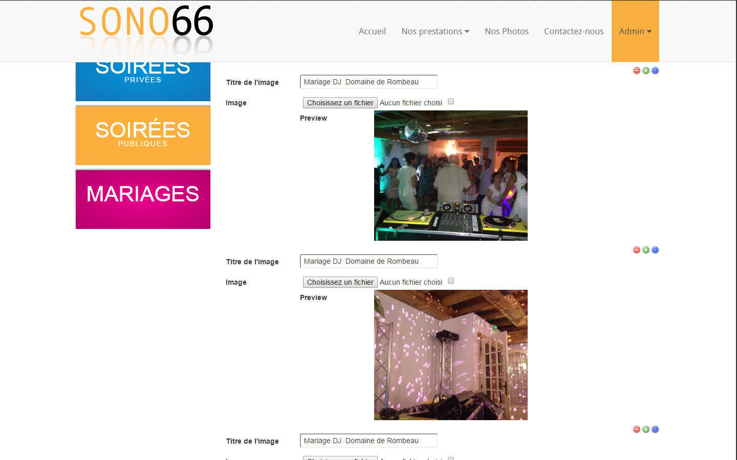 Gestion des images du slider de la page d'acceuil
